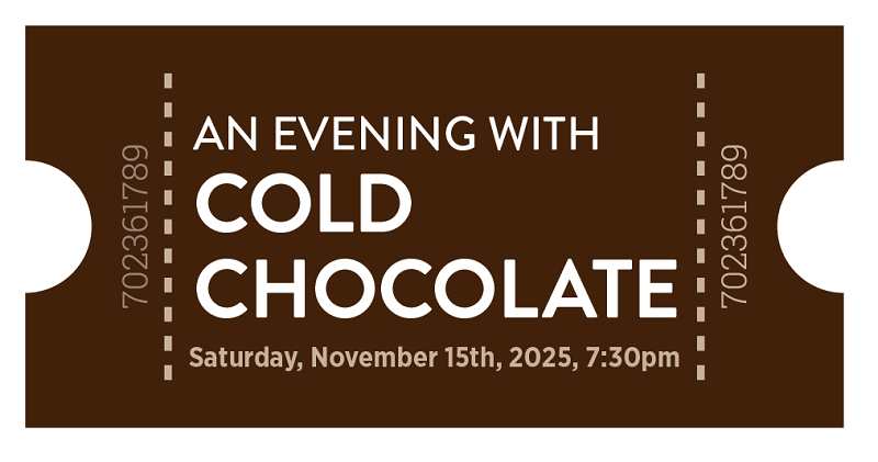 With Ethan Robbins on vocals, guitar and mandolin and Ariel Bernstein on vocals, percussion and banjo, Cold Chocolate fuses folk, funk and bluegrass and has released five albums. Simon Waxman of The Boston Review wrote that Cold Chocolate’s high energy and original music “sounds softer than the dew on the mountainside, harder than a Harley pushing back red dust, and sweeter than true love."