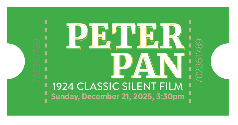 Peter Pan silent film (1924), Lindsay Crouse, narrator, with organ accompaniment by Peter Krasinski. More information coming soon…