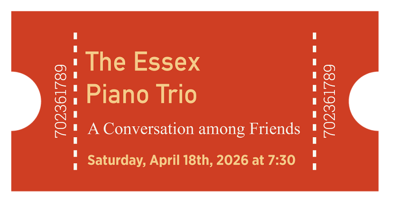 After playing together for several years throughout New England, the musical friends known as the Essex Piano Trio formalized their working relationship in 2017. The concert title “A Conversation among Friends,” borrowing a descriptive phrase from American biographer Catherine Bowen, alludes to their audience-friendly concert format of interesting music interspersed with casual commentary.